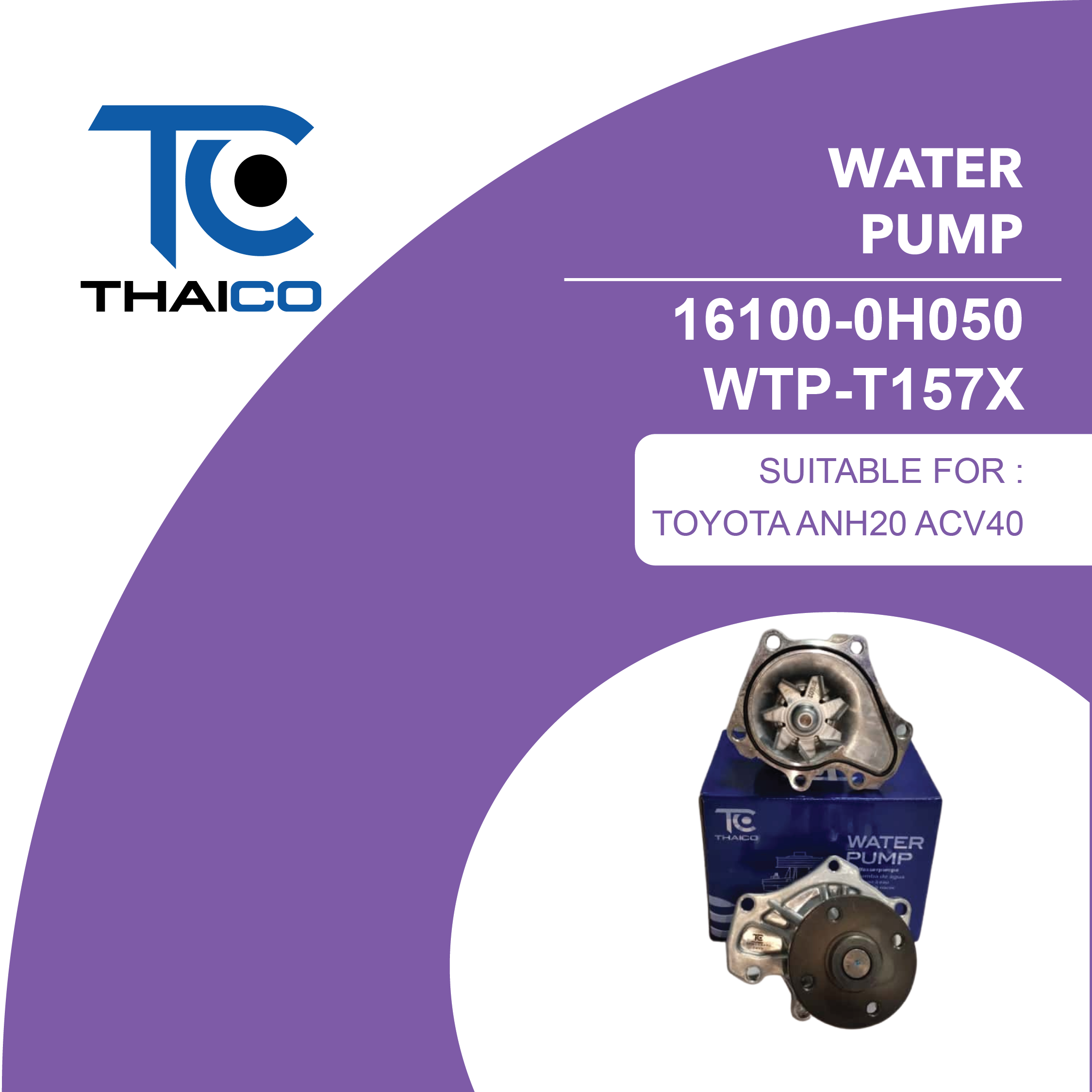 The 16100-0H050 (WTP-T157X) is a genuine-spec engine water pump assembly used primarily on Scion xB 2.4L (2AZ-FE) 2008–2015 and also cross-referenced to various Toyota 2.4L applications (Camry/RAV4/others) using the same pump pattern. It circulates coolant through the engine block and radiator to maintain correct operating temperature and prevent overheating. This unit replaces earlier Toyota part 16100-0H040 and is supplied as a direct bolt-on pump assembly.